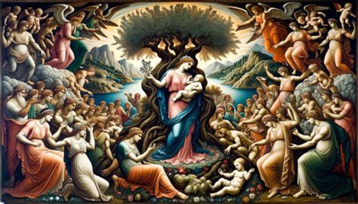 Leto is assisted during the difficult delivery by Eileithyia, the goddess of childbirth after she was called from Mount Olympus by the winged messenger Iris. The nine-day delivery was so troublesome that Leto had to grasp hold of a palm tree and olive tree for support.