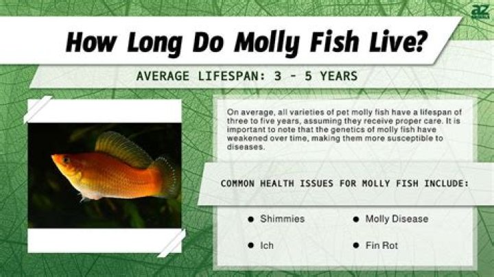 The molly fish lifespan is two to five years. This freshwater fish is not known to live a long life. Their lifespan actually depends on the environment you provide when keeping them as a pet. The water conditions impact the lifespan of mollies as they are prone to diseases if the water conditions are poor.