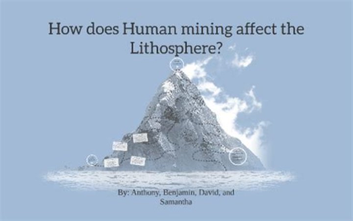 Humans impact the lithosphere by coal mining and mining for minerals. They also affect it by pollution, since the ground is permeable and it seeps into the lithosphere causing harm to it.