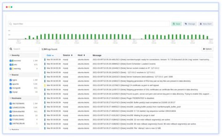 Sematext Logs.SolarWinds Loggly.Splunk.Logentries (now Rapid7 InsightOps)logz.io.Sumo Logic.SolarWinds Log & Event Manager (now Security Event Manager)ManageEngine EventLog Analyzer.